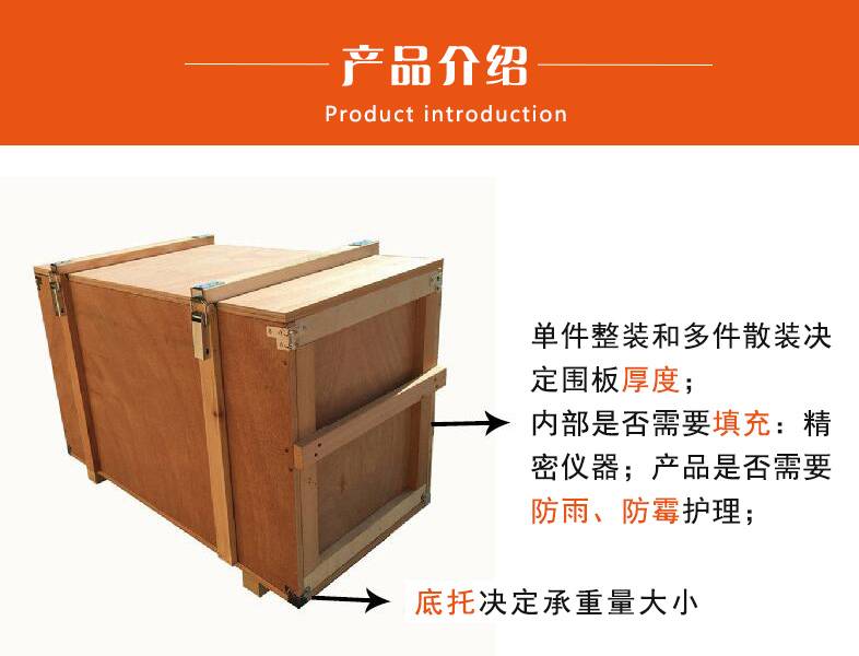 石家庄辰翔木业有限公司发展至今历经了十一年的历程,主要经营产品:木箱,木包装箱,木质包装箱,实木包装箱,复合板包装箱,花格箱,出口包装箱,钢边箱,木托盘等各种大中小型机械设备包装。我公司秉承以诚为本质量至上包您所想装您所用的经营理念,坚持"客户为主"的原则为广大客户提供优异的服务。望广大客户前来洽谈!